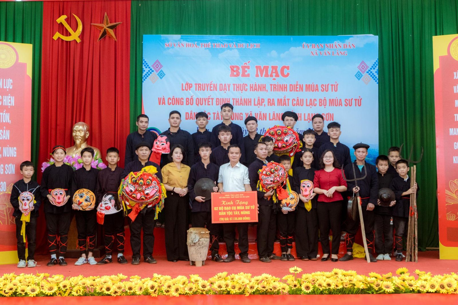 Tại chương trình bế mạc, Ban Tổ chức đã công bố Quyết định số 657/QĐ-SVHTTDL ngày 23/9/2025 của Sở Văn hóa, Thể thao và Du lịch và trao Giấy chứng nhận hoàn thành khóa học cho các nghệ nhân và học viên; Sở Văn hóa, Thể thao và Du lịch trao tặng 02 bộ đạo cụ múa sư tử cho UBND xã Văn Lãng; UBND xã Văn Lãng công bố Quyết định thành lập và ra mắt CLB múa sư tử dân tộc Tày, Nùng gồm 39 thành viên.