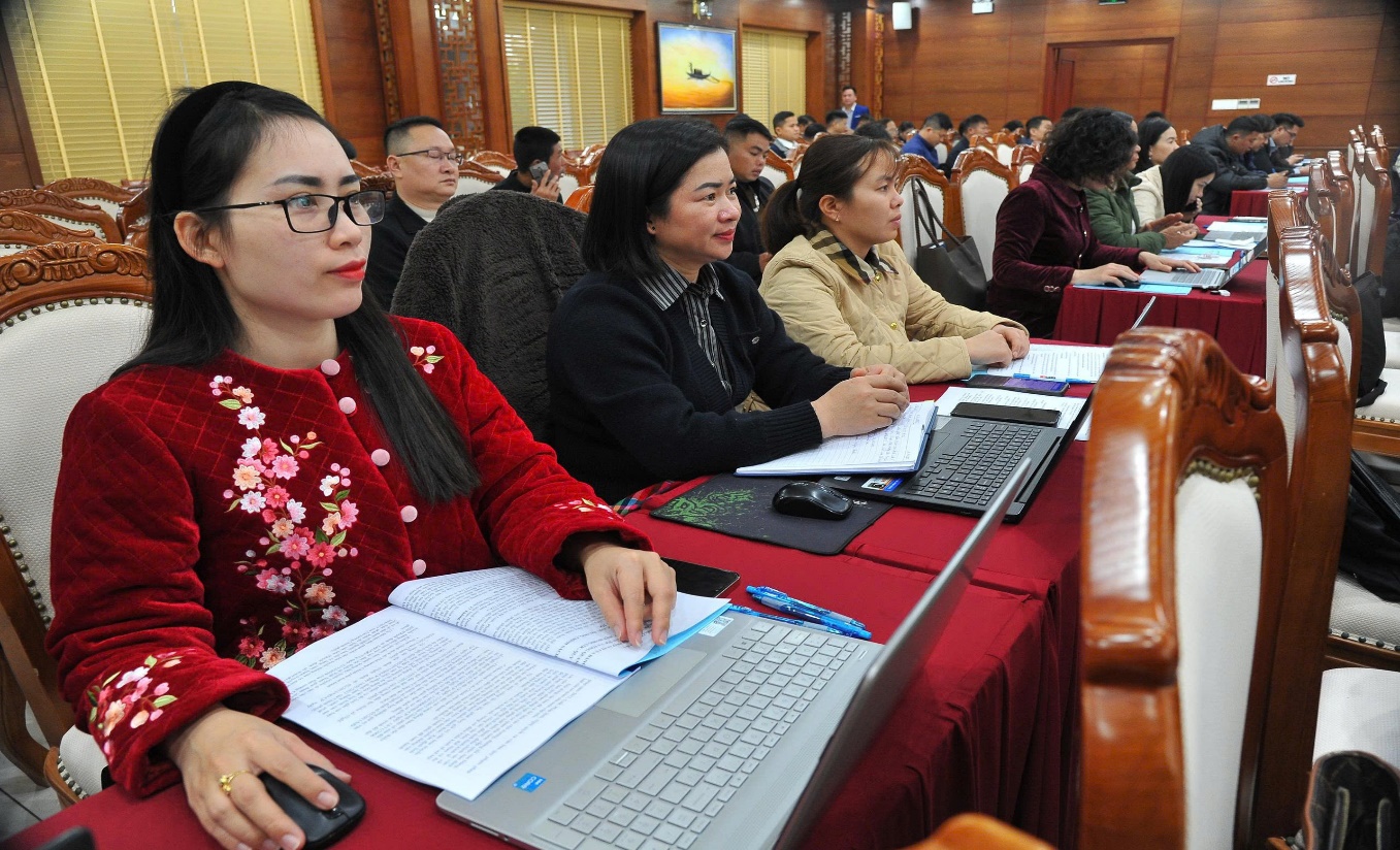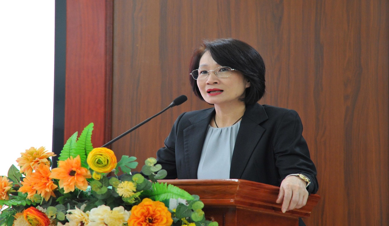 Đồng chí Lê Hải Yến - Phó Giám đốc Sở Văn hóa, Thể thao và Du lịch tỉnh Lạng Sơn lên lớp tại Hội nghị
