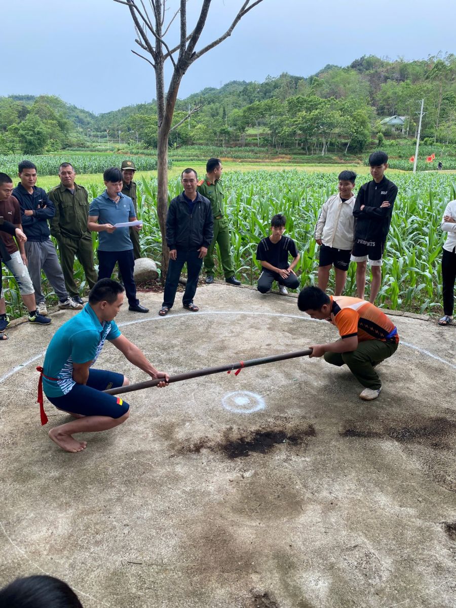 Trò chơi đẩy gậy diễn ra trong lễ hội.