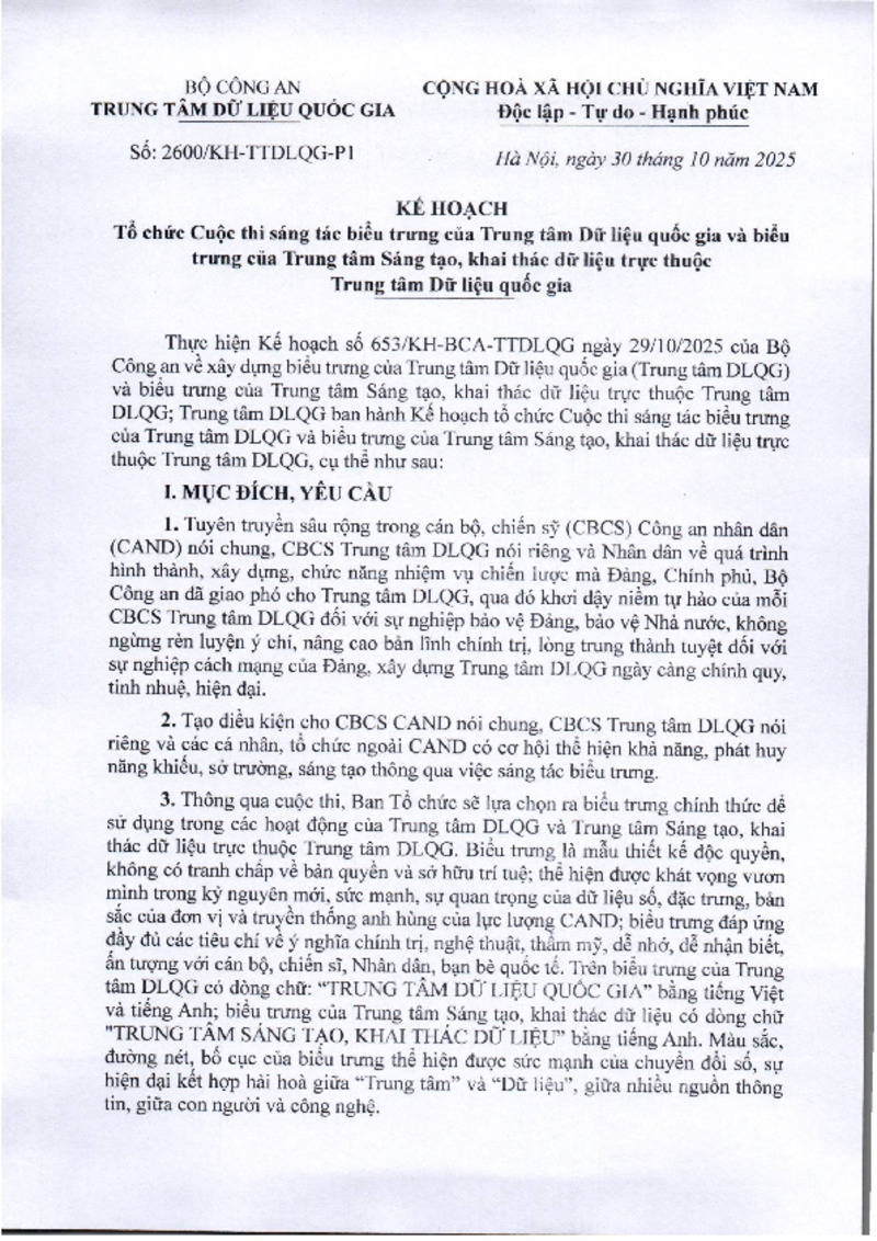 | Tiêu đề văn bản | Cuộc thi "Sáng tác biểu trưng của Trung tâm dữ liệu quốc gia và biểu trưng của Trung tâm Sáng tạo, khai thác dữ liệu" | ||