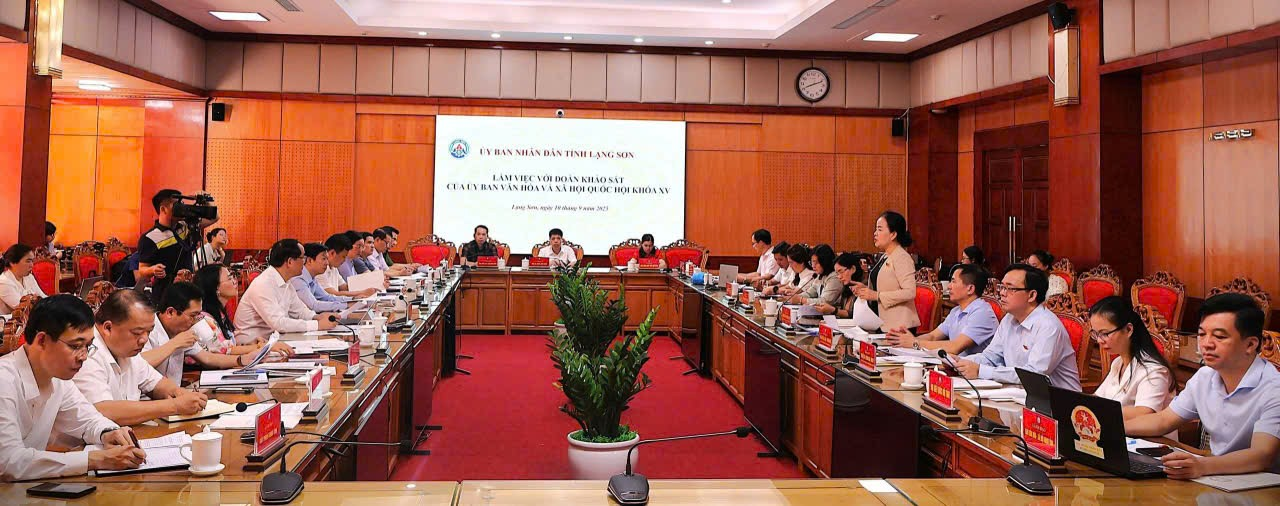 Đoàn khảo sát của Ủy ban Văn hóa và Xã hội của Quốc hội khóa XV làm việc với UBND tỉnh Lạng Sơn về thực hiện tốt chính sách, pháp luật về phòng chống bạo lực gia đình.