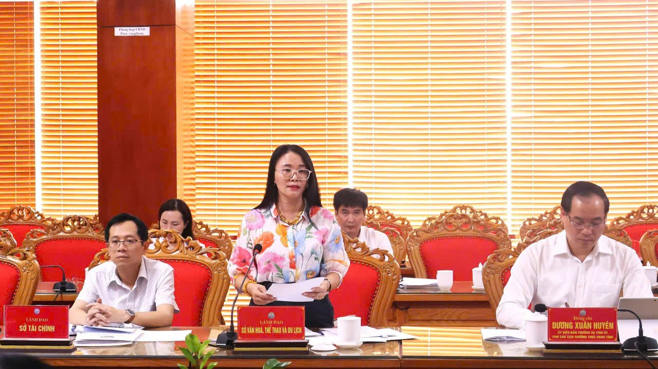 Đồng chí Lê Hải Yến, Phó Giám đốc Sở Văn hóa, Thể thao và Du lịch trình bày báo cáo tại buổi làm việc.