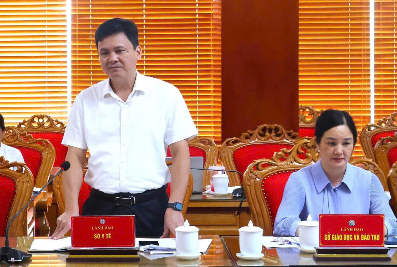 Đồng chí Hoàng Xuân Trường, phó Giám đốc Sở Y tế trao đổi nội dung với đoàn Khảo sát.