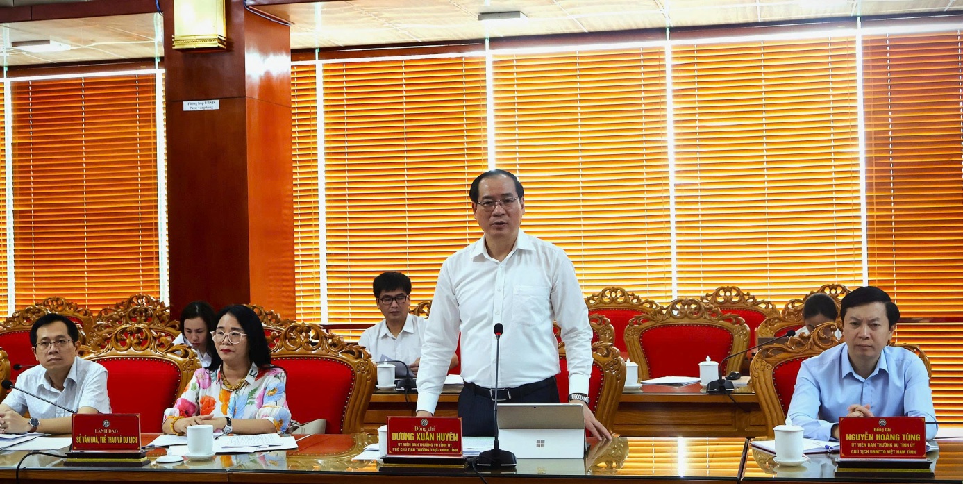 Tham gia đoàn khảo sát có đồng chí Trịnh Thị Thủy, Thứ trưởng Bộ Văn hóa, Thể thao và Du lịch; đồng chí Nguyễn Văn Trường, phó Chủ tịch Hội đồng nhân dân tỉnh; đồng chí Triệu Quang Huy, Phó Trưởng Đoàn đại biểu Quốc hội tỉnh Lạng Sơn tham gia tại buổi làm việc.