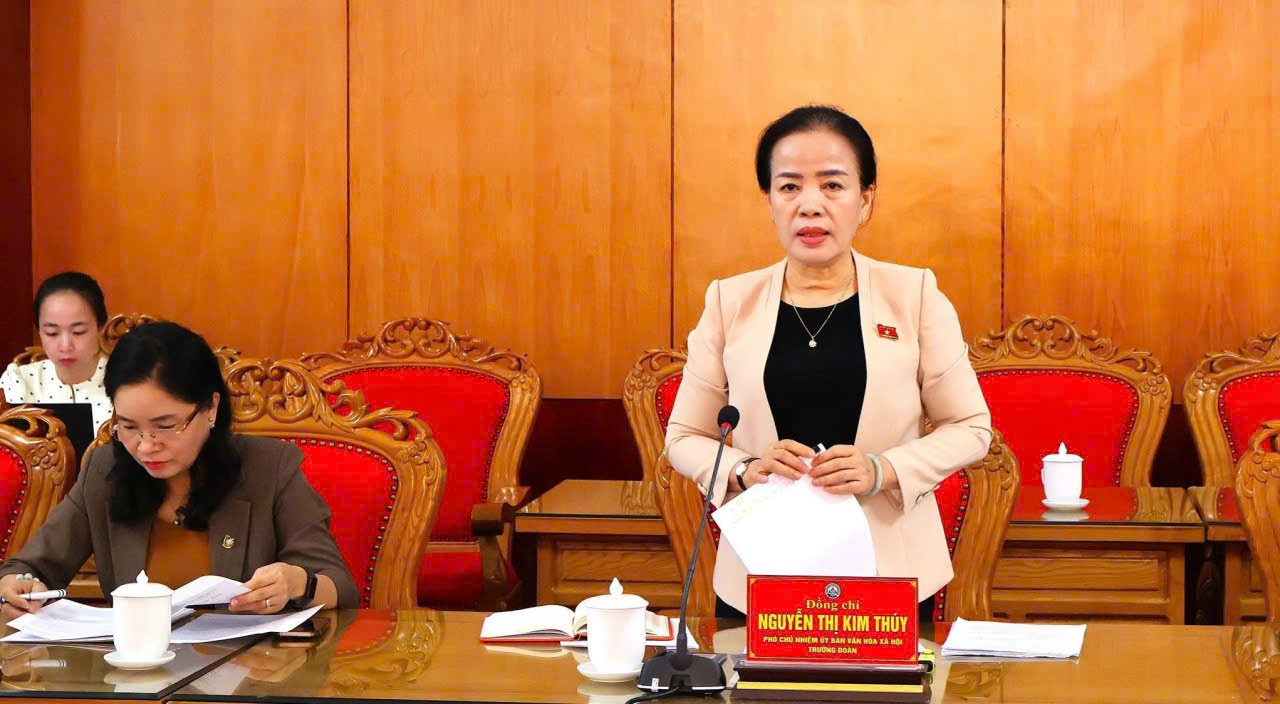 Đồng chí Nguyễn Thị Kim Thúy, Phó Chủ nhiệm Ủy ban Văn hóa và Xã hội của Quốc hội kết luận buổi làm việc.
