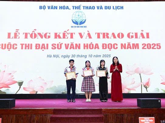 Sáng 30/10, tại Bảo tàng Hồ Chí Minh (Hà Nội), Lễ tổng kết và trao giải cuộc thi Đại sứ Văn hóa đọc toàn quốc năm 2025 đã diễn ra trang trọng, với sự tham dự của lãnh đạo Bộ Văn hóa, Thể thao và Du lịch cùng đại diện các tỉnh, thành phố. Tỉnh Lạng Sơn vinh dự đoạt 2 giải, gồm 1 danh hiệu Đại sứ Văn hóa đọc tiêu biểu và 1 giải Ba, khẳng định sức sống mạnh mẽ của phong trào đọc sách trong thế hệ trẻ tỉnh Lạng Sơn.