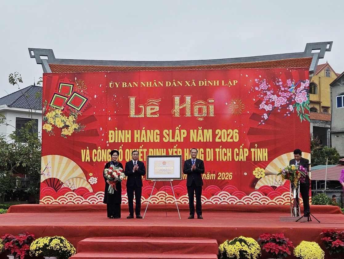 Sáng ngày 26/03/2026 (tức ngày mùng 10 tháng Giêng năm Bính Ngọ), UBND xã Đình Lập, tỉnh Lạng Sơn trang trọng tổ chức Lễ công bố Quyết định và đón nhận Bằng xếp hạng di tích cấp tỉnh đối với di tích Kiến trúc Nghệ thuật Đình Háng Slấp. Đây là dấu mốc quan trọng trong công tác bảo tồn, phát huy giá trị di sản văn hóa trên địa bàn tỉnh Lạng Sơn.