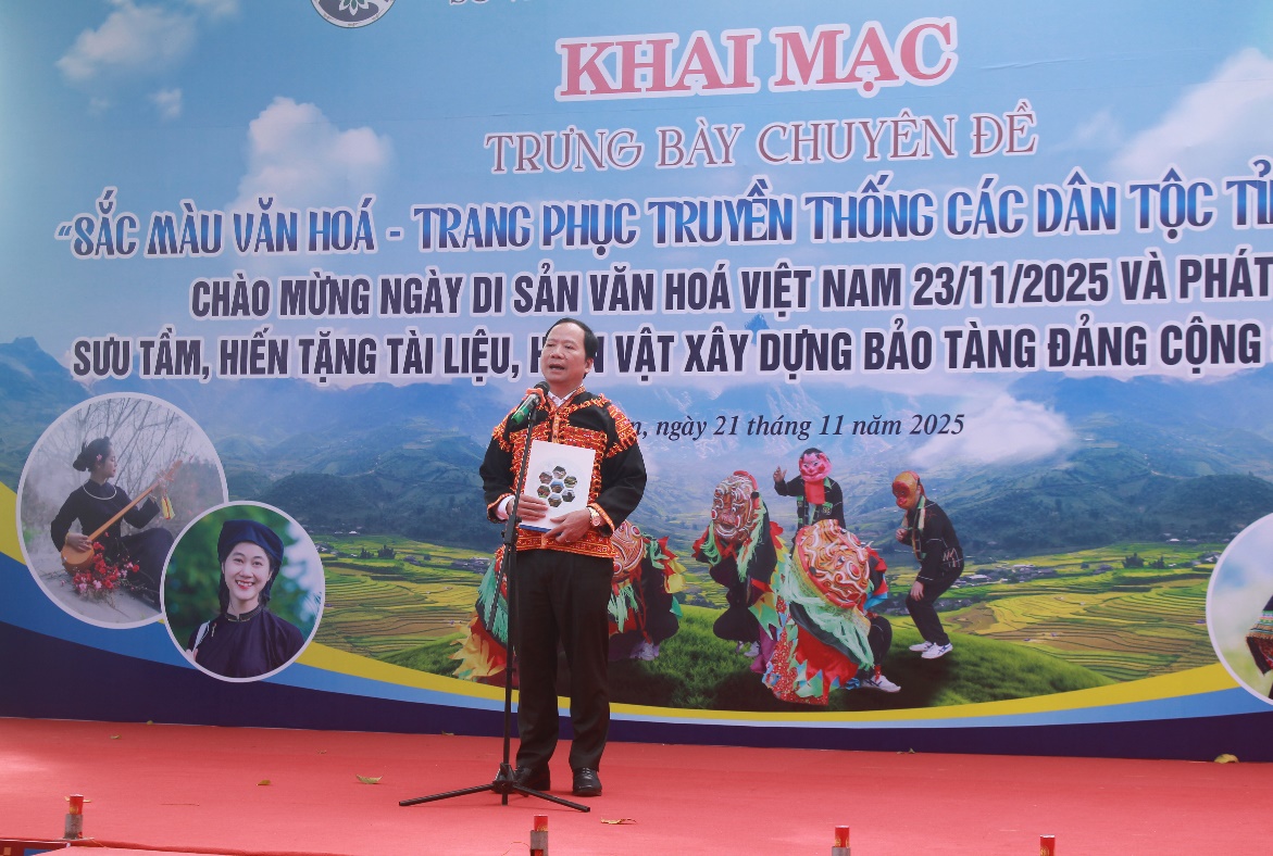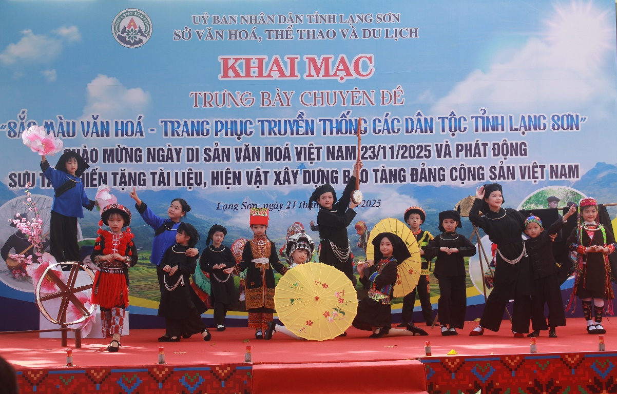 Hưởng ứng Ngày Di sản văn hóa Việt Nam (23/11), sáng 21/11/2025, tại Bảo tàng tỉnh Lạng Sơn, Sở Văn hóa, Thể thao và Du lịch tỉnh Lạng Sơn tổ chức khai mạc Trưng bày chuyên đề “Sắc màu văn hóa - Trang phục truyền thống các dân tộc tỉnh Lạng Sơn. Tới dự có đồng chí Đoàn Thanh Sơn, Phó Chủ tịch UBND tỉnh; đồng chí Nguyễn Đặng Ân, Giám đốc Sở Văn hoá, Thể thao và Du lịch tỉnh; cùng đại diện lãnh đạo các sở, ban, ngành và các em học sinh Trường PTDTNT THCS & THPT Tràng Định.