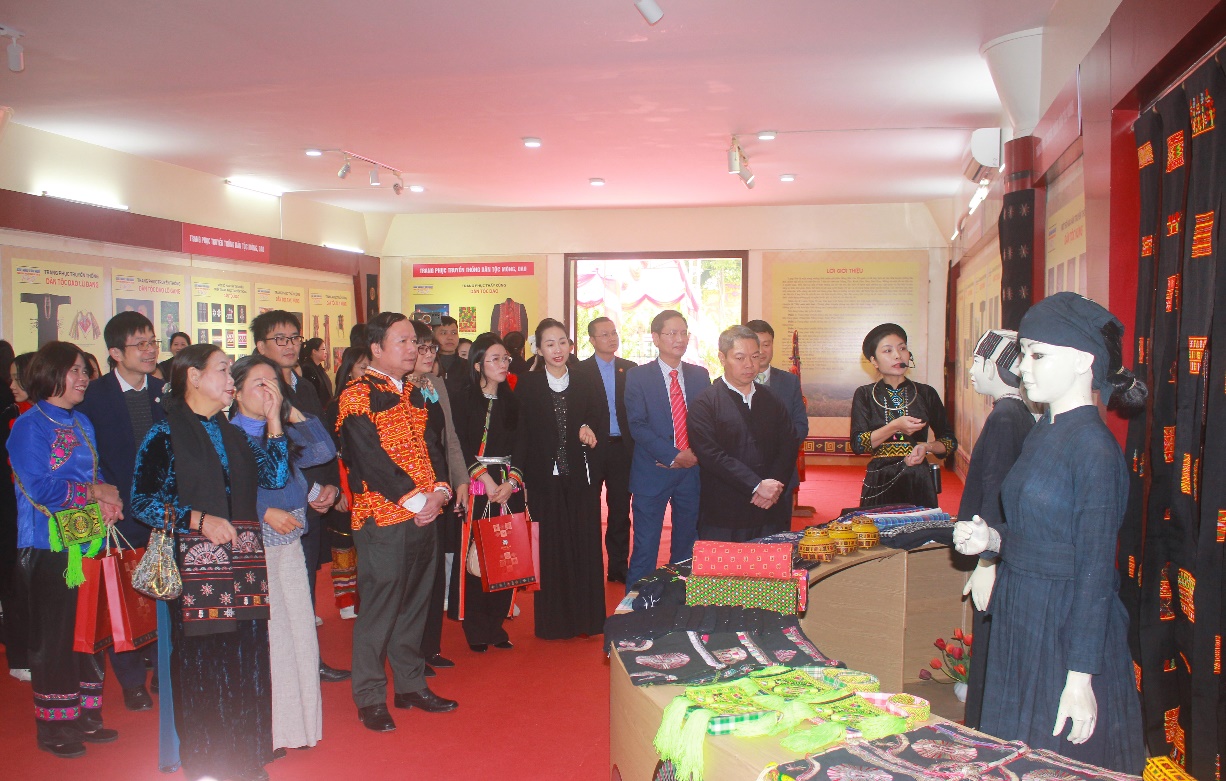 Ngoài hệ thống ảnh tư liệu và hoa văn đặc trưng, trưng bày còn có nhiều hiện vật tiêu biểu: khung cửi dệt vải, đồ hành lễ then – tào, trang sức truyền thống, bộ múa sư tử mèo, vải nhuộm chàm, thổ cẩm… Đặc biệt, hoạt động trình diễn thêu – dệt và trình diễn trang phục dân tộc của nghệ nhân hứa hẹn tạo sự hấp dẫn đối với khách tham quan.