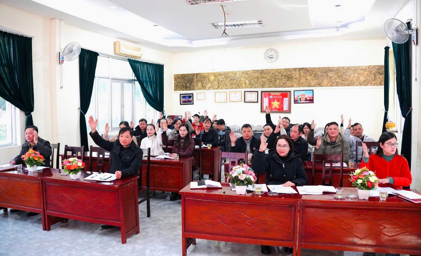 Ảnh: Đảng viên Chi bộ biểu quyết thông qua Nghị quyết về nhiệm vụ công tác năm 2026 của Chi bộ
