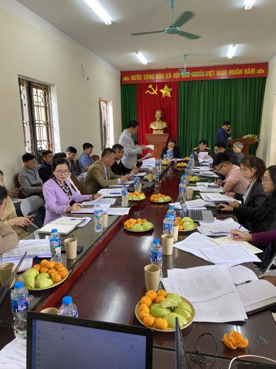 Đại diện Lãnh đạo UBND xã Báo cáo, trao đổi tại buổi làm việc